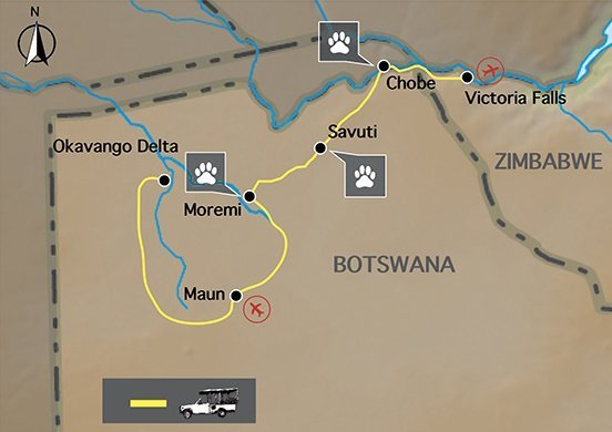 Beleef de magie van Botswana: luxe en avontuur in de wildernis. Er zijn maar weinig ervaringen die kunnen tippen aan een week in de ongerepte wildernis van Botswana. Deze klassieke rondreis combineert het comfort van prachtige lodges met de authentieke beleving van luxe kamperen. U reist door wereldberoemde parken, geniet van adembenemende landschappen en beleeft unieke wildlife-momenten. Laat u betoveren door de schoonheid van de Okavango Delta, de avonturen in Moremi en de imposante Victoria Falls. Deze safari is de perfecte balans tussen ontspanning, avontuur en natuurpracht.